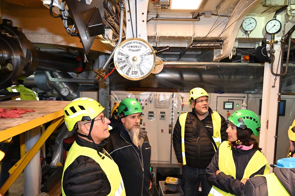 Unter der Leitung der Herren Imhof und von Flüe konnten sich die Teilnehmer ein Bild von der Herstellung der NaviExpress-Schiffe machen. Angesprochen wurden auch die Herausforderungen und nötigen Lösungen, um mehr als 2,5 Millionen Passagiere pro Jahr (Zahl für 2022) auf dem Seeweg zu befördern.