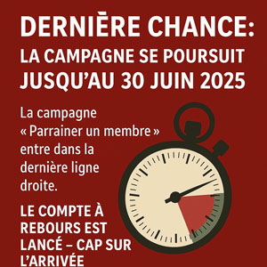 Dernière chance : notre campagne « Parrainer un membre » se poursuit seulement jusqu’au 30 juin 2025 !