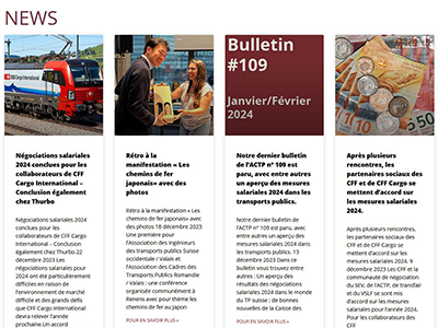 En tant qu’Association de cadres, nous utilisons différents canaux pour informer nos membres et le public. Nous montrons ce qui est d’actualité au niveau de l’association, dans le domaine du partenariat social et, de manière générale, sur les thèmes des transports / de la politique des transports ainsi que de la conduite, de la profession, de la technique et de la recherche.