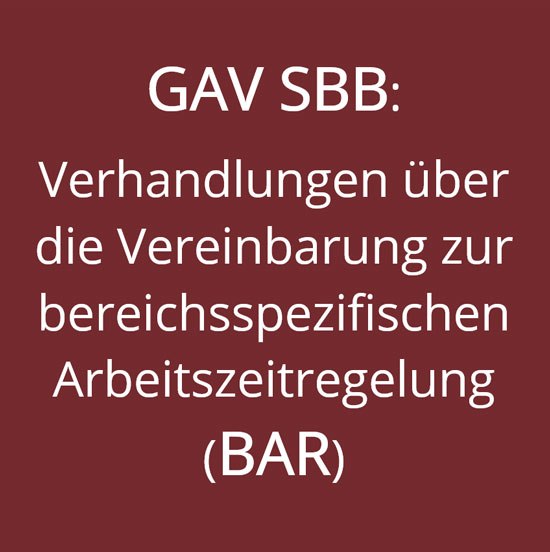 Diese Woche haben die Verhandlungen über die vier bereichsspezifischen Arbeits-zeitregelungen (BAR) für das Lokpersonal, das Kundenbegleitpersonal, das Rangierpersonal und das Zugreinigungspersonal bei der Bahnproduktion im Personenverkehr SBB begonnen.
